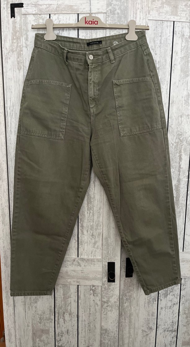 Kadın Bol Kesim jean Haki Pantolon