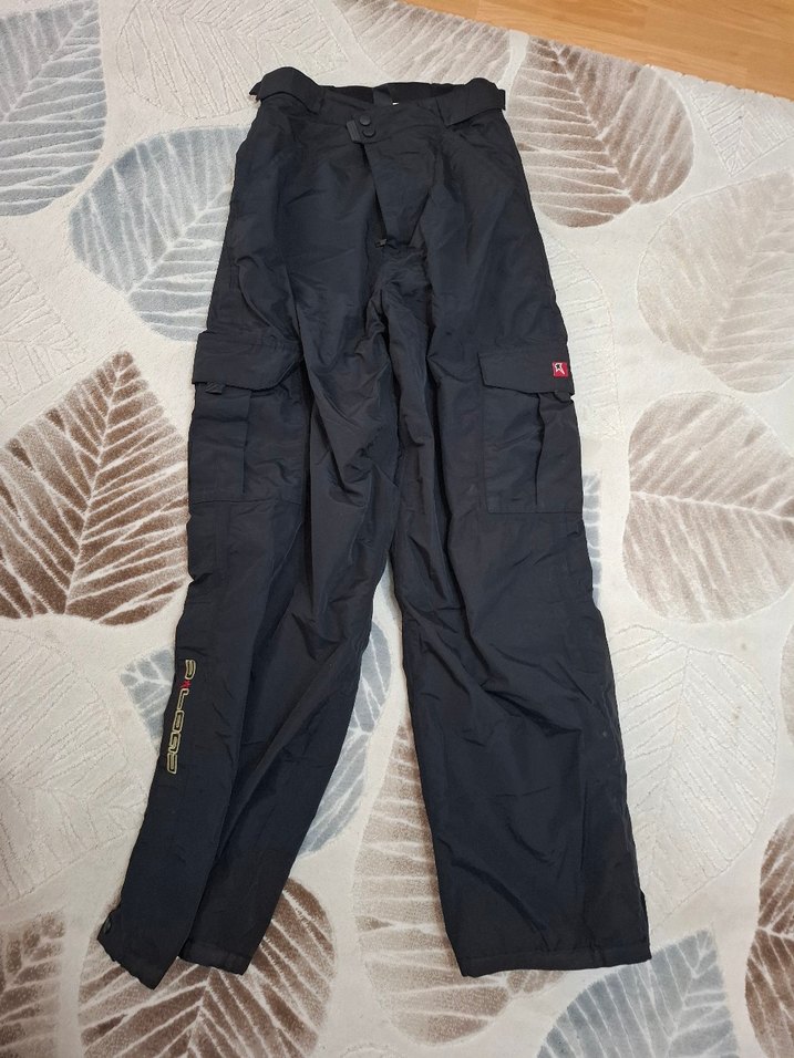 kadın siyah bol kesim kayak pantolonu, kemerli ve yumuşak, sıcak tutan kumaştan yapılmıştır. Sokak stiline uygun, yan cepli ve midi boydadır. ⛷️