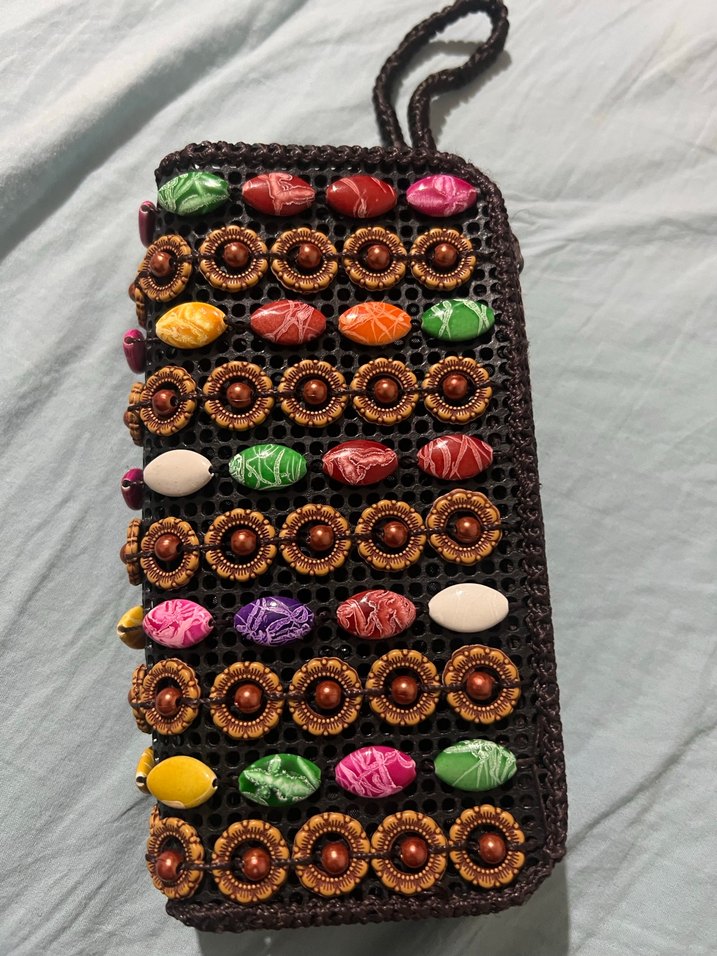 Kadın boncuk işlemeli cüzdan