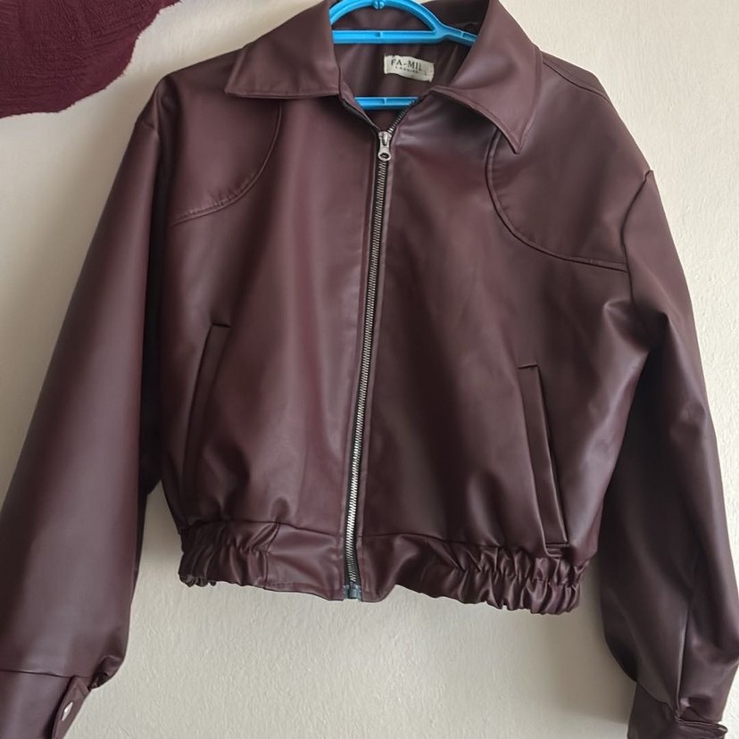 Kadın bordo Deri Ceket