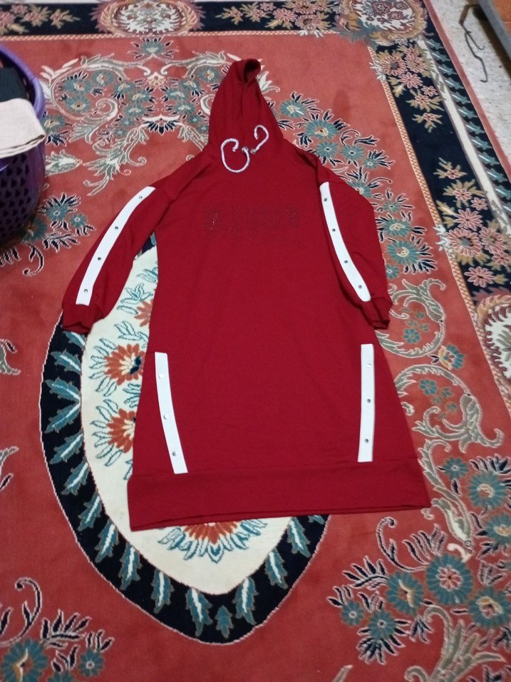 bordo renkli, kapüşonlu ve uzun kollu bu sweatshirt, normal kesimdir. Renkli baskılar ve kolları ve etekler zımba detaylar içerir. Yumuşak kumaştan yapılmıştır. iki iplik #tunik