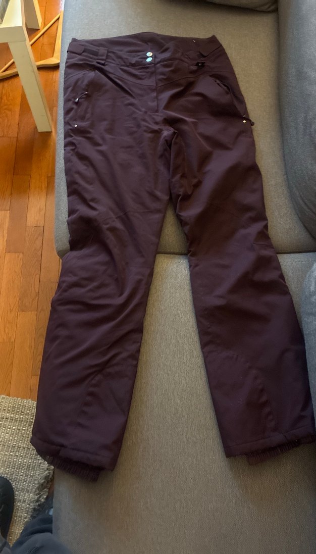 Sentetik kumaştan yapılmış, bordo kadın kayak pantolonu. Tokalı bel detayı ve normcore tarzıyla dış mekan kullanımı için uygundur. ⛷️