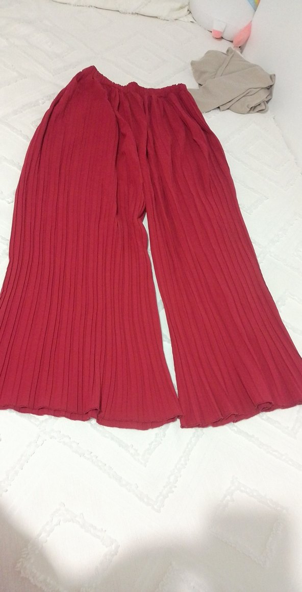 Kadın bordo Pileli Keten Bol Pantolon