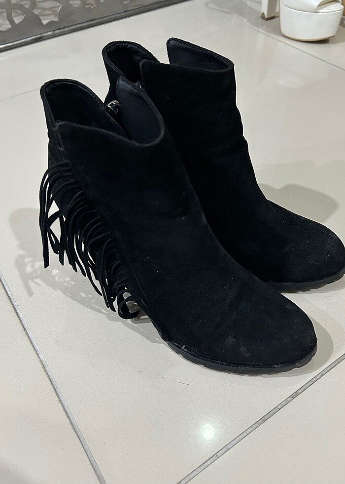 topuklu bot 38 numara ama kalıbı biraz dar 37 37,5 numaraya uyumlu kumaşı süet tertemiz hiç bir sorunu yok yalnızca bir kaç kez giyildi