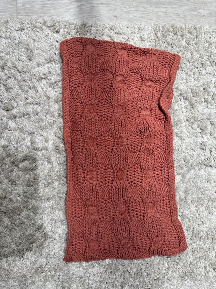 Yumuşak dokulu, kahverengi örgü boyunluk, rahatlıkla ısınmak için uygundur. Soğuk havalarda ısıtan bir yapıdadır
