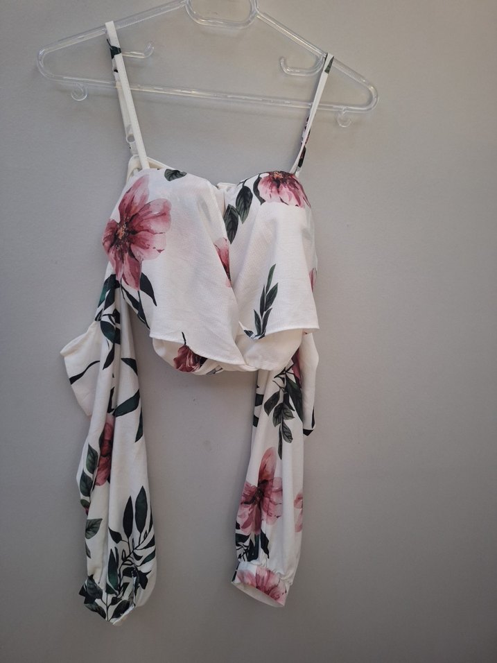 az kullanıldı destekli cıcek desenli arkadan fermuarlı askılı sarkık kol detayı