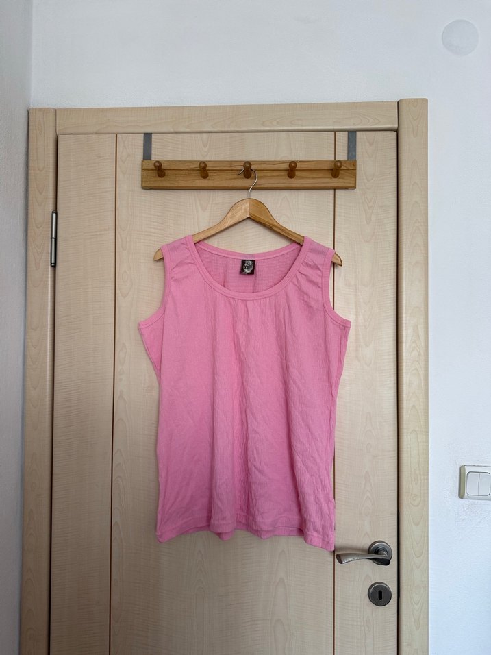 Pembe kolsuz atlet, yuvarlak yaka ve bol kesim özelliği ile rahat bir kullanım sunar. Pastel tonları ve midi uzunluğu günlük şıklık sağlar. Üründe bir kusur bulunmamaktadır.