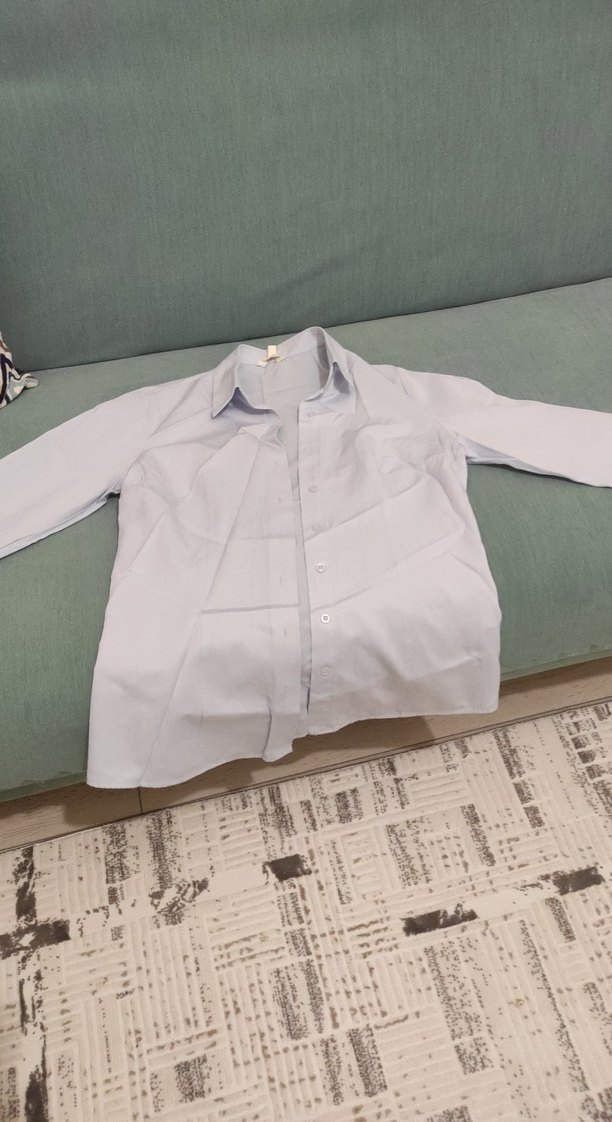 Bu beyaz keten gömlek, yakalı, uzun kollu ve regular fit kesime sahiptir. Düğmeli ön kısmı ve midi boyu ile günlük kullanıma uygundur. bir iki kez giyildi