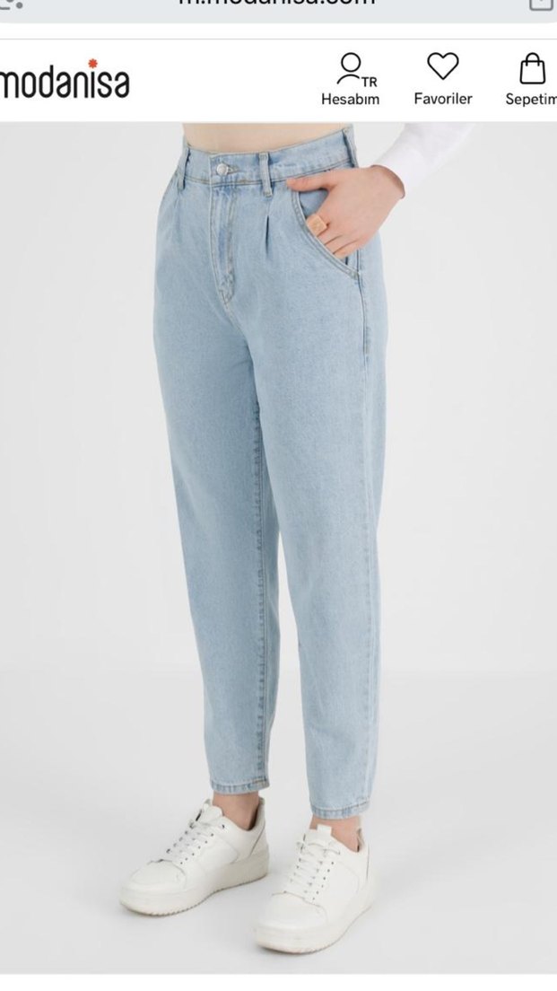 Buz mavisi renktedir. Boyfriend kalıptadır. Rahat kesime sahip yüksek beldir. %100 pamuktur. Defosu yoktur. Modanisa markaya aittir. İsteyene detaylı ürünün fotoğrafını atabilirim. Herkesin dolabında olması gereken bir renk modeldir.