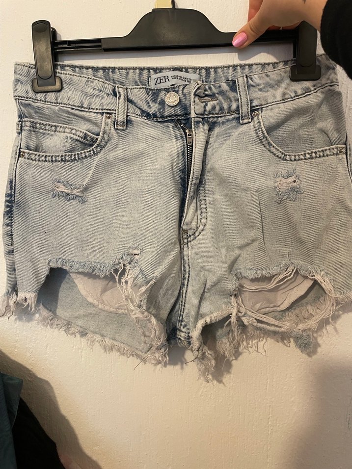 Kadınlar için bol kesim, buz mavisi, yırtık detaylı mini denim şort, günlük rahat kullanım için uygundur. S bedenlerede olur kalıbı biraz dar