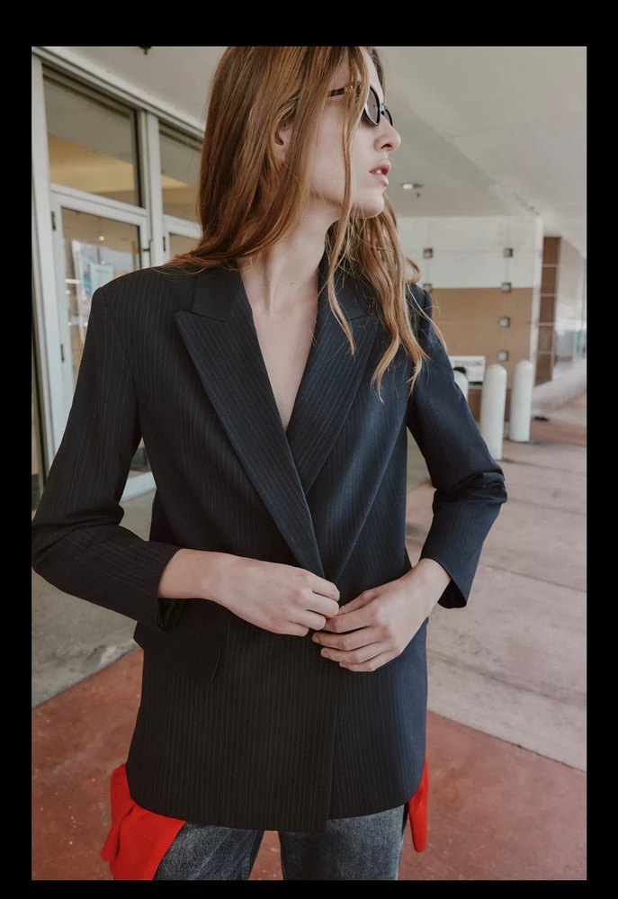 Kadın ç Çizgili Düğmeli Blazer Ceket