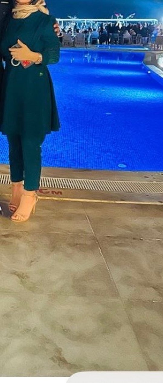 Kadınlar için zümrüt yeşili renkli, takım kemerli detaylıdır. Düz sentetik kumaştan üretilmiş 40 beden