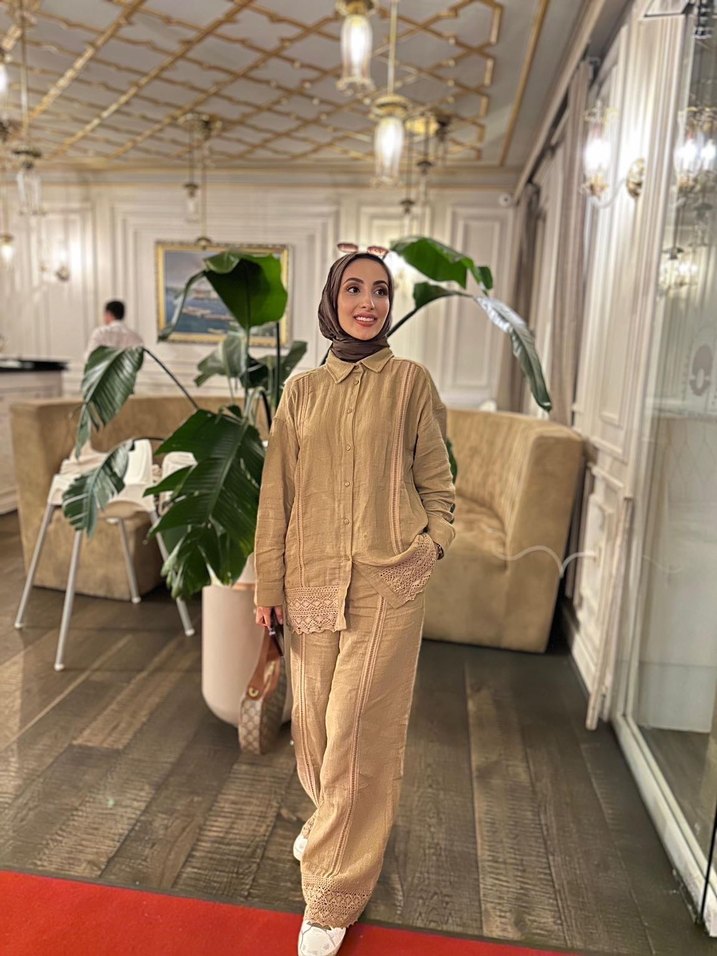 Kadın Camel Keten Uzun Kollu Takım