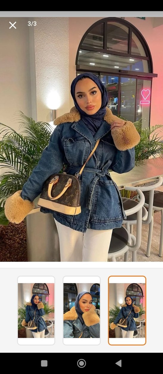 Bir kez tek kullandım 1490₺ ye satın aldım. Bol kesim denim ceket, yakada ve manşetlerde camel renkli kürk detaylı, uzun kollu ve hafif batik desenli. Günlük kullanım için uygundur.