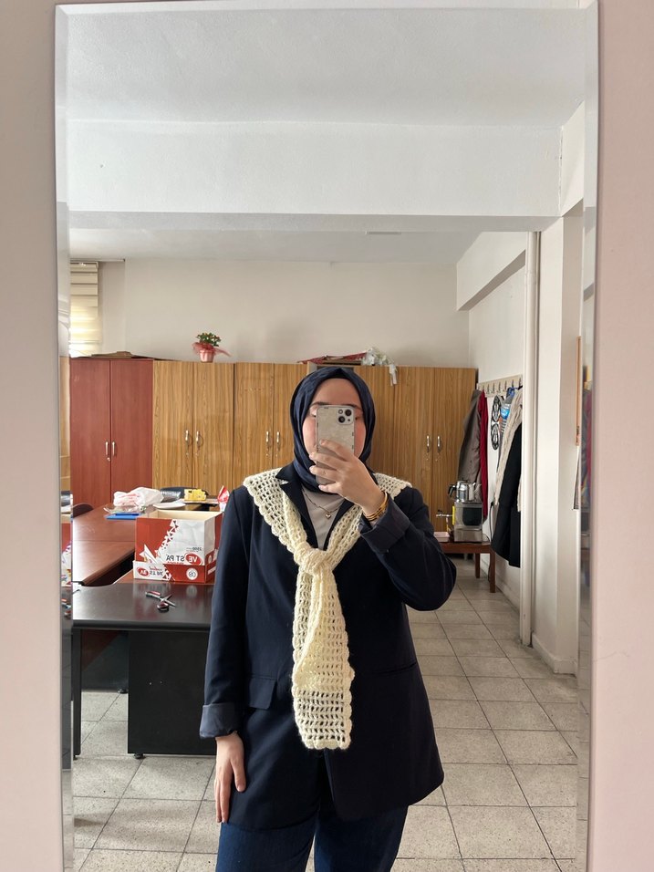 Kadınlar için camel renginde örülmüş, yumuşak triko kumaştan yapılmış örgü atkı. Sade ve rahat günlük kullanıma uygundur.