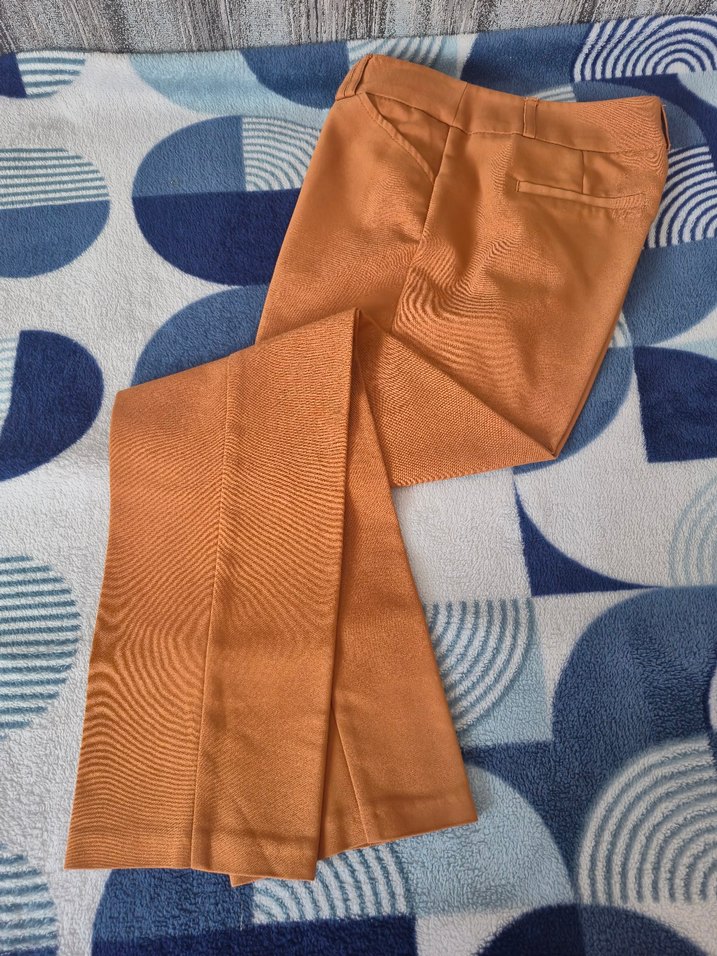 Kadın camel rengi kumaş pantolon, normal boy ve regular fit. Sentetik kumaştan, parlak yüzeyli ve pililidir, günlük rahat sokak stili için uygun.