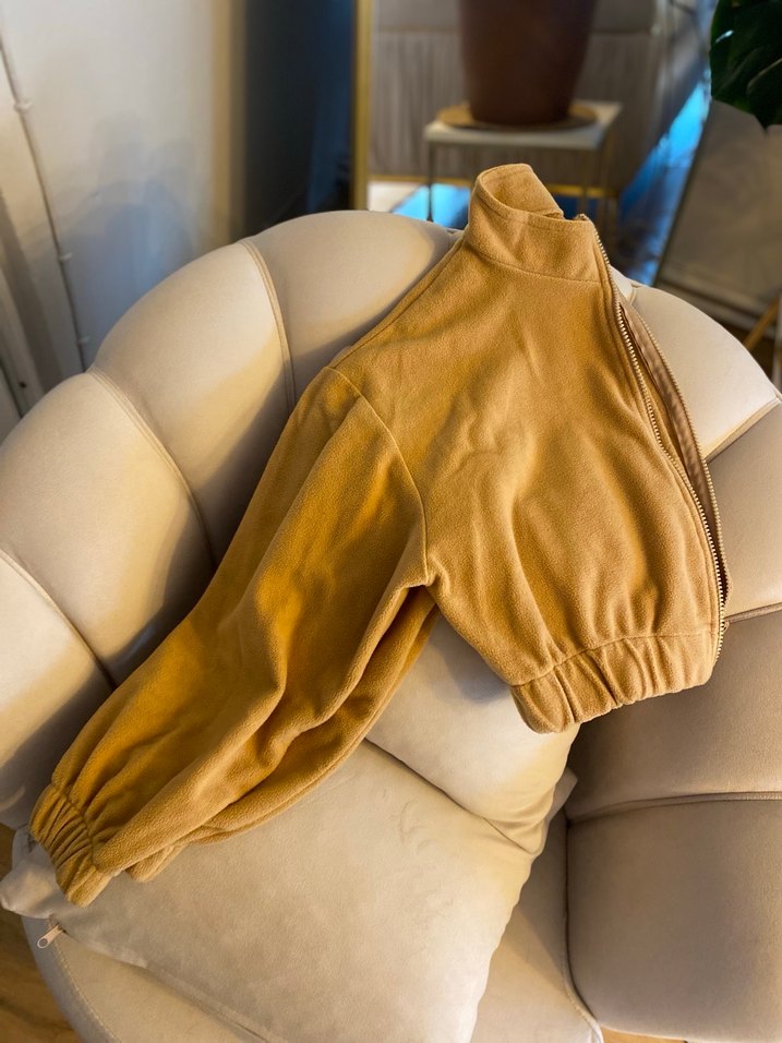 Kadın Camel Renk Fermuarlı Sweat