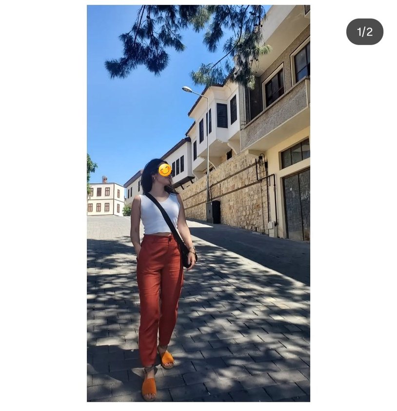 S/26/36 bedendir. Bel kısmında hafif lastik vardır. Birkaç kez giydim. Üstte duruşunu görebilirsiniz. Taba rengidir.
