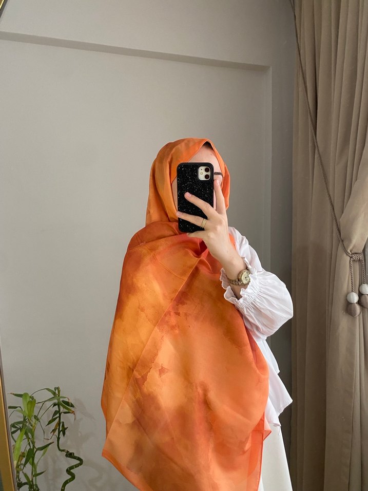 Kadınlar için tasarlanmış, ipek dokulu, camel renginde drapeli şal. Minimalist ve mütevazı tarzı yansıtan sokak giyimi için uygun bir parça.