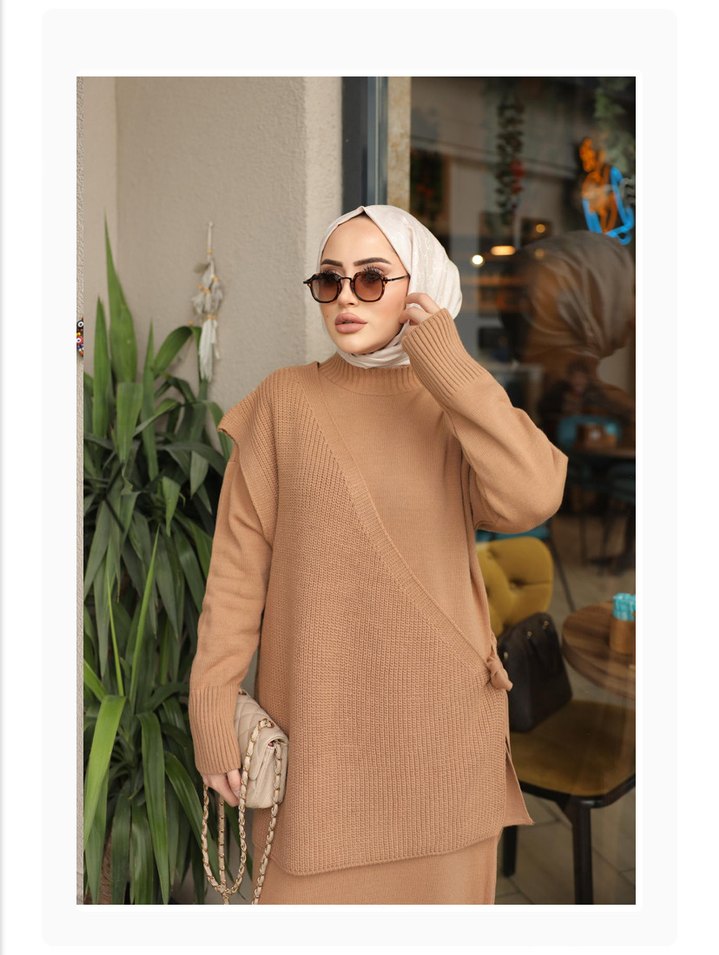 Kadın Camel Renkli Uzun yelekli Triko Kazak standart bedendir