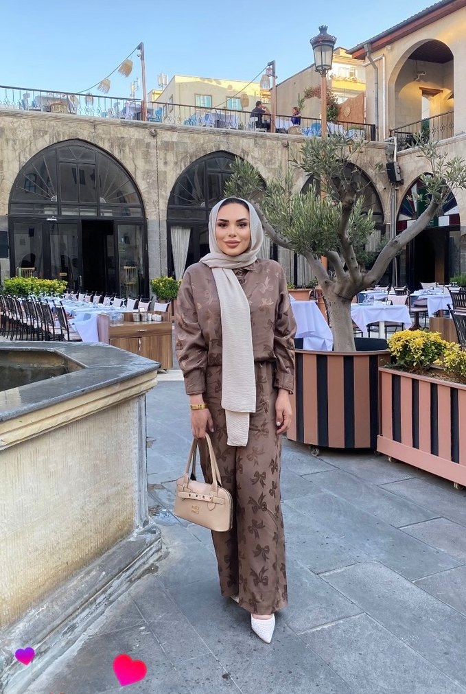 Kadınlar için camel renkli, uzun boy ve regular fit kesime sahip takım. Yüksek yakalı ve uzun kollu, tie-dye desenli, günlük kullanım için rahat sentetik kumaştan. Bir kez akşam yemeğinde giydim kumaşı çok rahat ve çok güzel