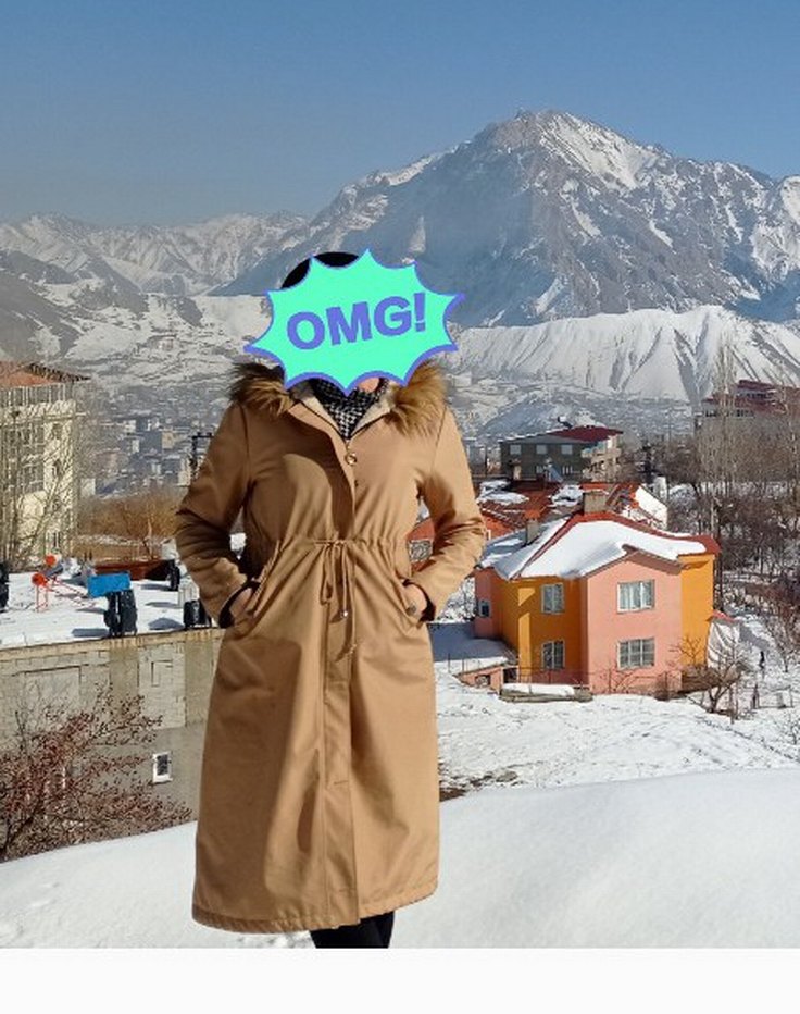 Kadınlar için uzun diz altına gelmektedir, bol kesim, camel renkli mont ( fotoğrafta göründüğü gibidir.. içi ful Kürk detaylı, yumuşak kumaştan, çentik yakalı ve uzun kollu. marka temsilidir. ürünün hiçbir kusuru yoktur sadece iplerinin ucundaki küçük metalden bir tanesi çıkmıştır ilk fotoğraf ve 3. fotoğrafta görünüyor.