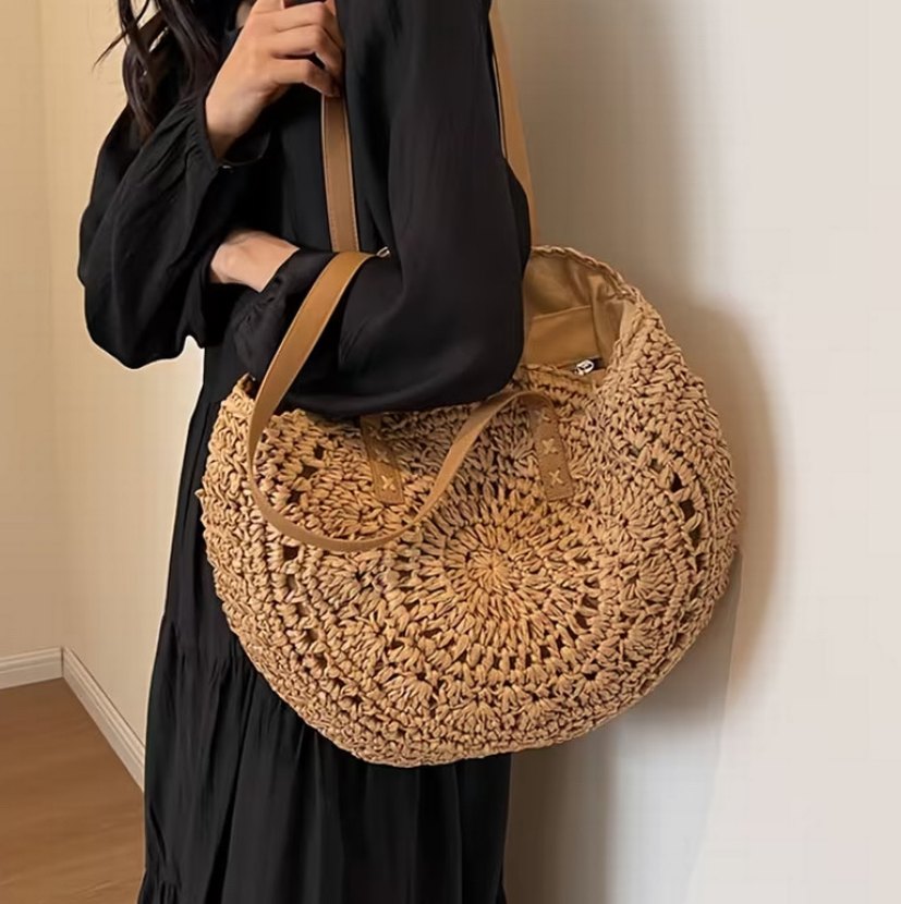 Dantel detaylı, yuvarlak şekilli bej örgü bohem kadın çanta, günlük kullanıma uygundur. 2 farklı renk seceneği mevcuttur. Talebe göre istenen renkte yeni istek açılacaktır