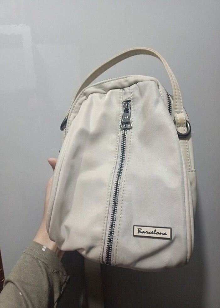 21-K Barcelona markalı kadın çantasıdır. İki askısı var, el çantası, çapraz sırt çantası, iki askılı sırt çantası, kol çantası gibi askıların yer değiştirmesiyle kullanılabilir. Ben artık bu tarz kullanmadığım için satıyorum. Ön kısmında hafif Sarı renklenmeler var. Resmini çeksem bile belli olmuyor. Kuru temizlemeye göndermedim belki çıkar. Onun dışında sorunu yok.