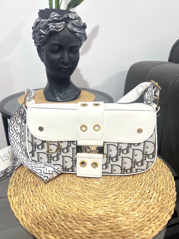 Beyaz renkte, tokalı ve baskılı sentetik kumaştan yapılmış kadın çantası. Klasik zarafet ve Parisian sokak modasını yansıtır, günlük kullanım için uygundur.