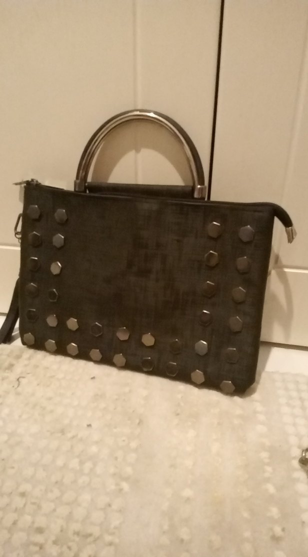 , tokalı detaylar ve baskılı desenli, metal saplı. Günlük kullanıma uygun vintage goth tarzı.