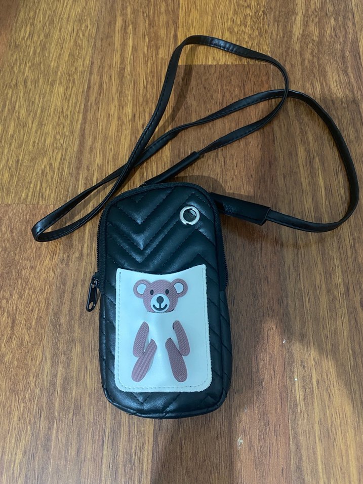 Dikişli deri, ayı desenli ve fermuarlı koyu kahverengi çapraz çanta, günlük sokak stili için uygun.