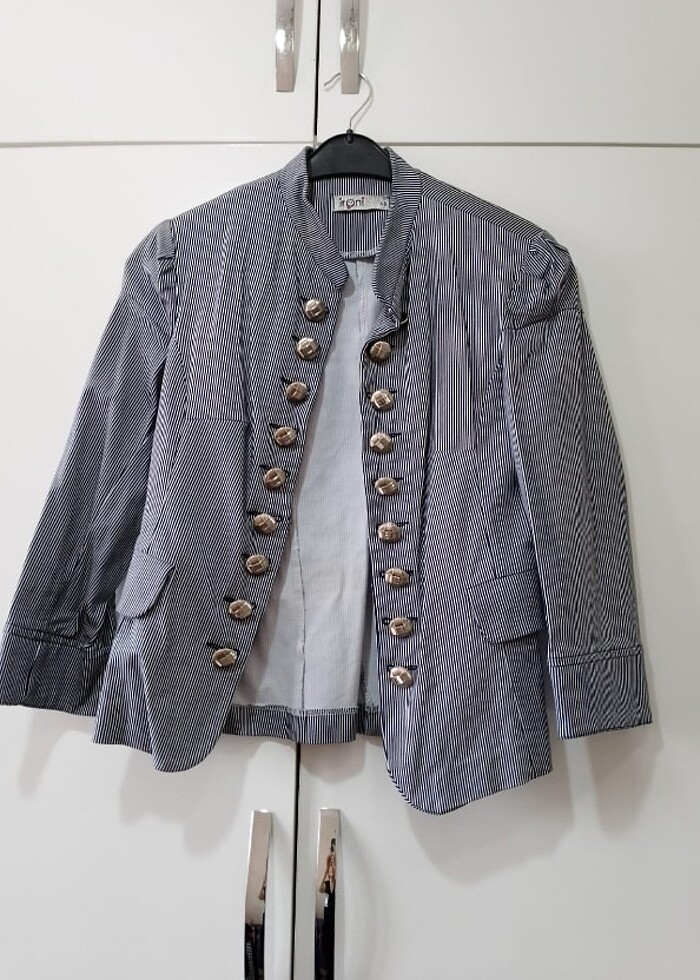 Çizgili kısa turfa kol ceket