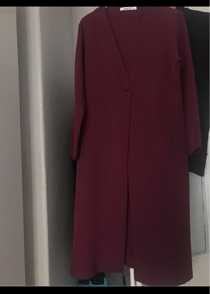Uzun tesettür ceket bir kere giyildi defosu vs.yok boyu 100cm’dir önden tek düğmeli likralı çok kaliteli ve şık bir cekettir..38/40 bedene olur