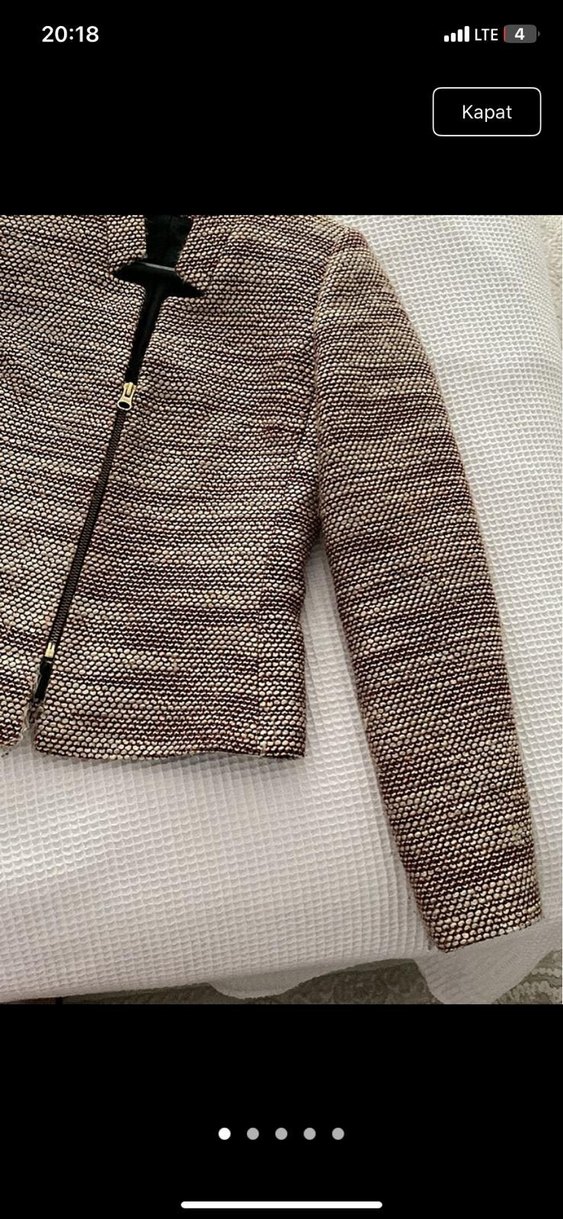 Fermuarlı ve kesik yakalı bu kadın cekettir. Uzun kollu, normal kesim, kahverengi ve gri tonlarında minimalist ve çağdaş tarzda, günlük kullanım için uygundur. Defosu ve herhangi bir sorunu yoktur. Kurtarıcı bir üründür her kombine rahatlıkla uyar.