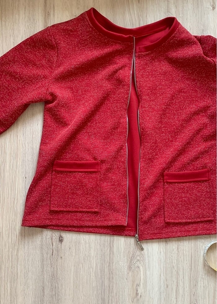kadın ceket hırka kırmızı renk kusuru yok ölçüleri mevcut