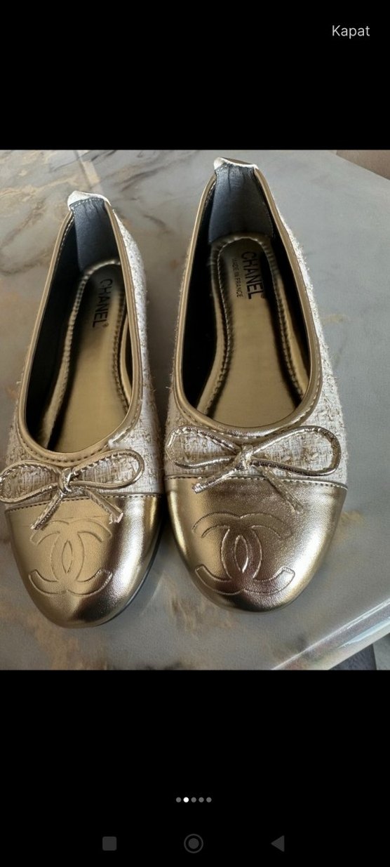Altın renkli kadın babet sağlam ve temizdir hiç giyilmedi ayağıma geniş olduğu için satıyorum