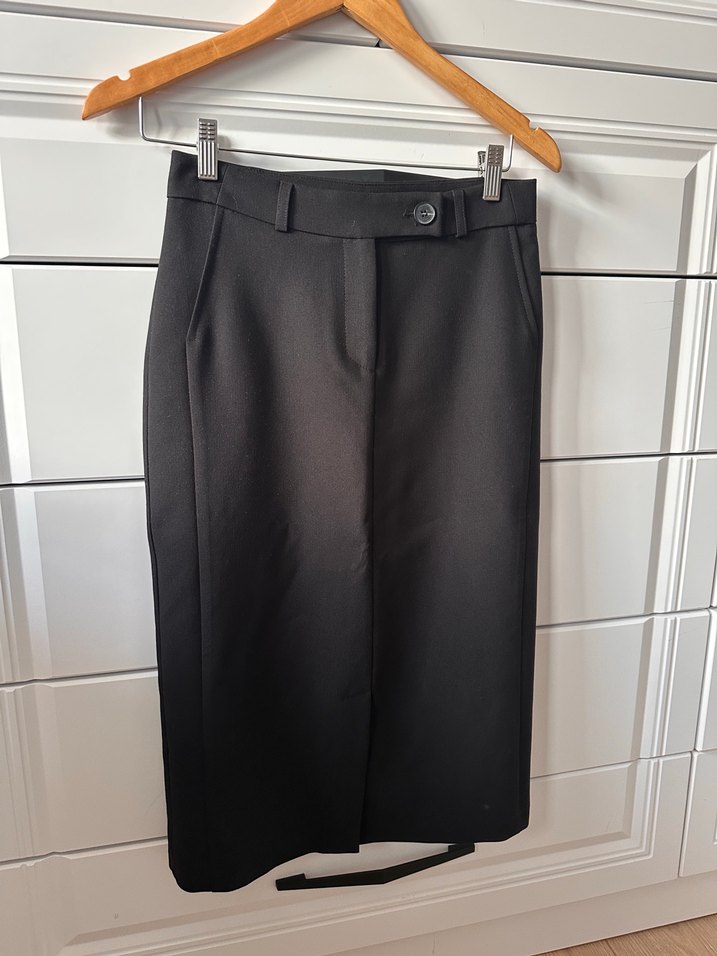 Düz siyah midi kalem etek, kemerli ve regular fit. Sorunsuz kaliteli ve hiç giyilmedi. iş ortamı için uygun, sade ve şık. 36 bedene uygun