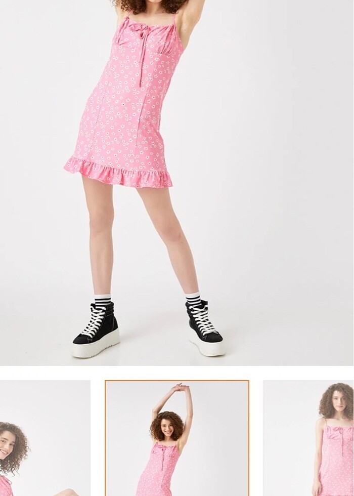 Kadın çiçek desenli pembe elbise