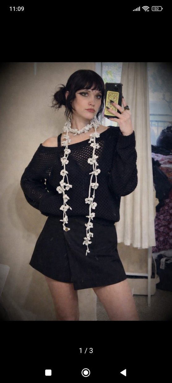 skinny çiçek desenli atkı günlük kullanıma uygun gotik tarzda.