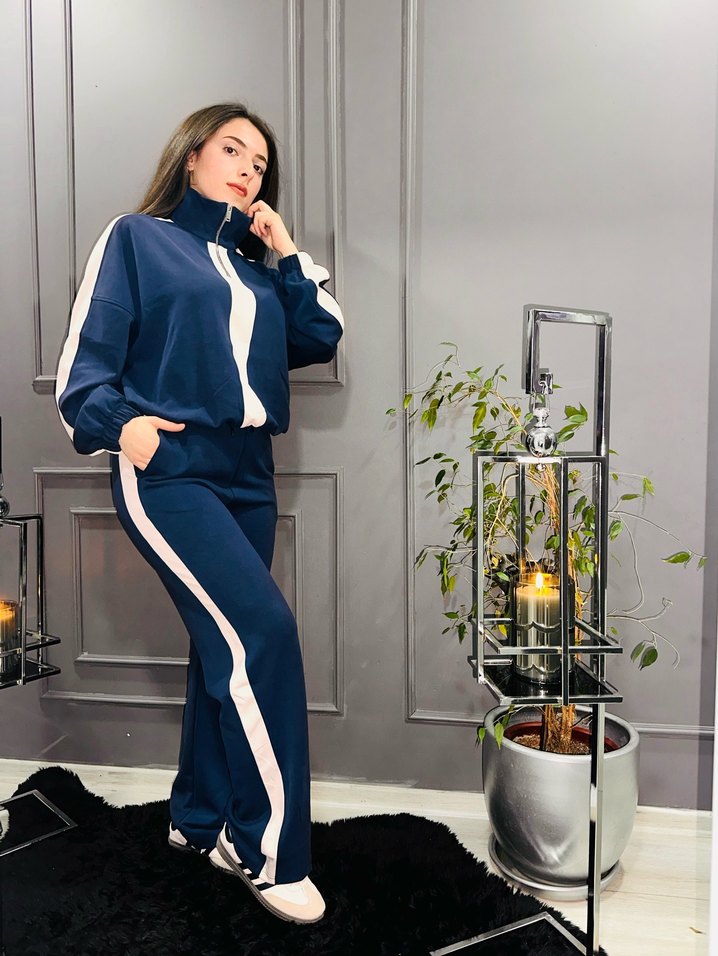 Kadın Çizgili, Fermuarlı Eşofman Takımı