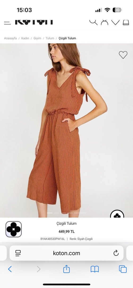 Kadınlar için çizgili, kahverengi midi tulum. V yaka, kolsuz, pileli ve bol kesimdir. Sentetik kumaştan, günlük sokak tarzı için uygundur. 2-3 kez giydim defosu yoktur