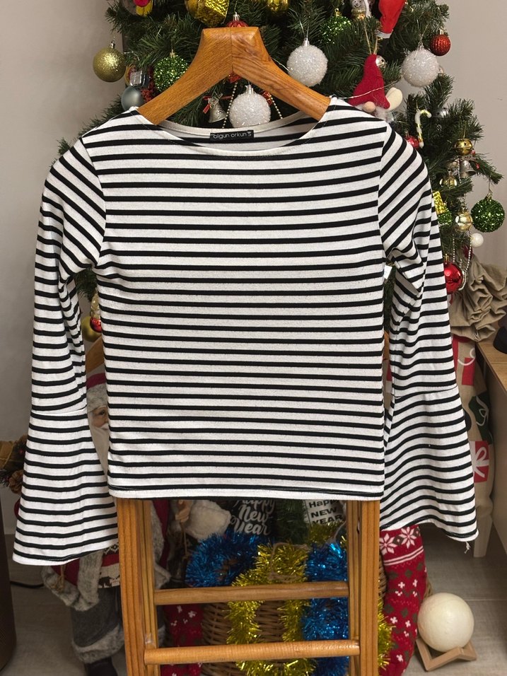 Kadın Çizgili Triko Bluz