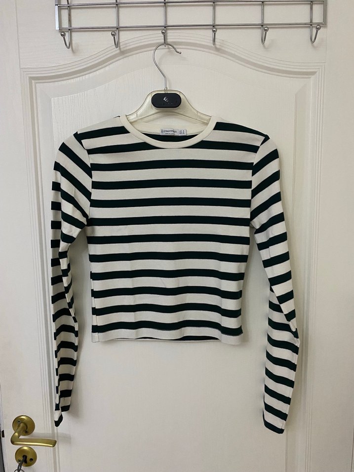 Kadın Çizgili Uzun Kollu Crop Top