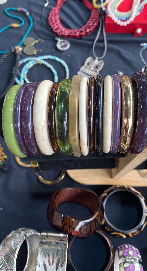 Bohem tarzda, koyu çok renkli boncuklu ve vintage tie-dye desenli kadın bilekliği. Günlük kullanıma uygundur. Adet 150