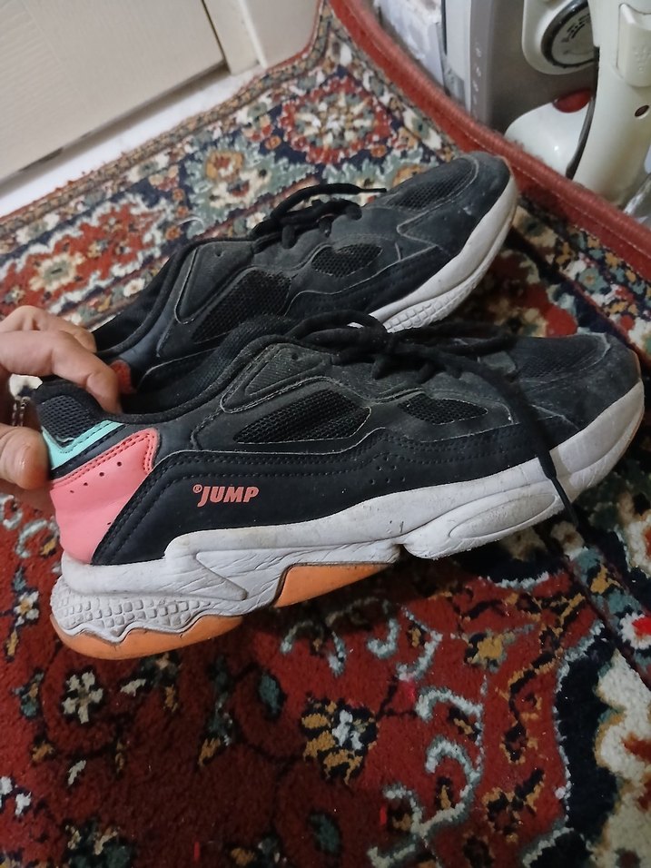 Kadınlar için çok renkli tie-dye desenli, bağcıklı ve kauçuk tabanlı spor ayakkabılar. Stiletto topuklu ve yan tarafında 'JUMP' yazısı bulunur. ♀️