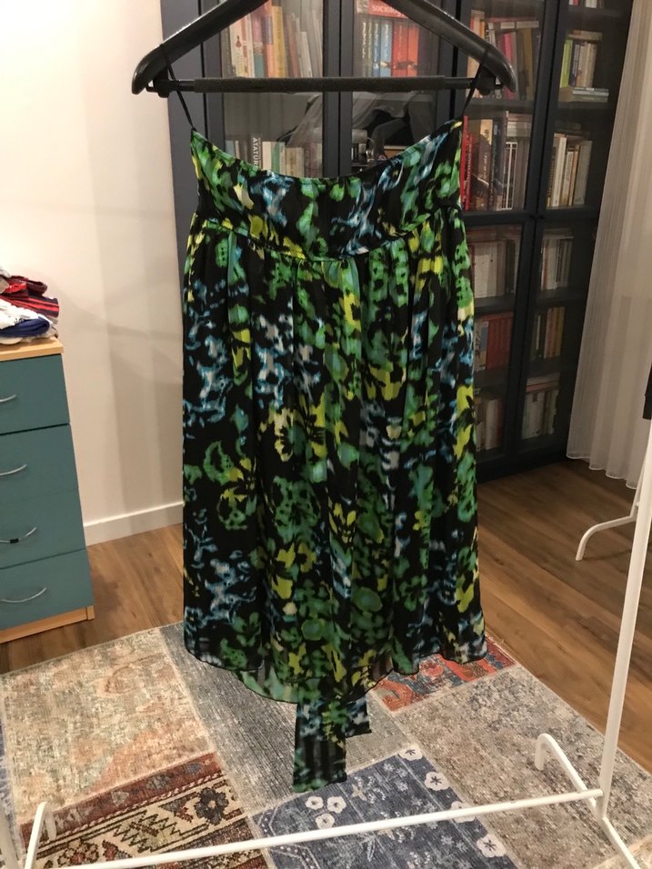 Kadınlar için çok renkli bağlama desenli, sentetik kumaştan yapılmış, bol kesim ve drapeli kısa elbise Bohem ve avangart tarzıyla parti için uygundur.
