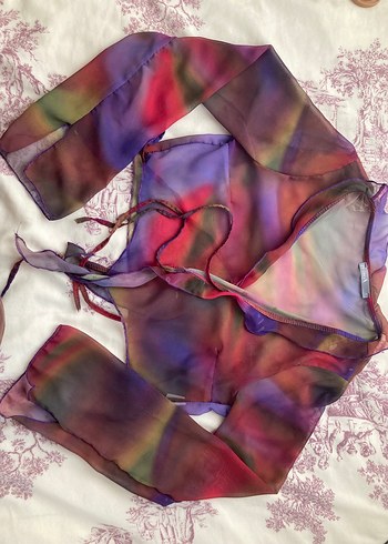 önden bağlamalı tül bluz