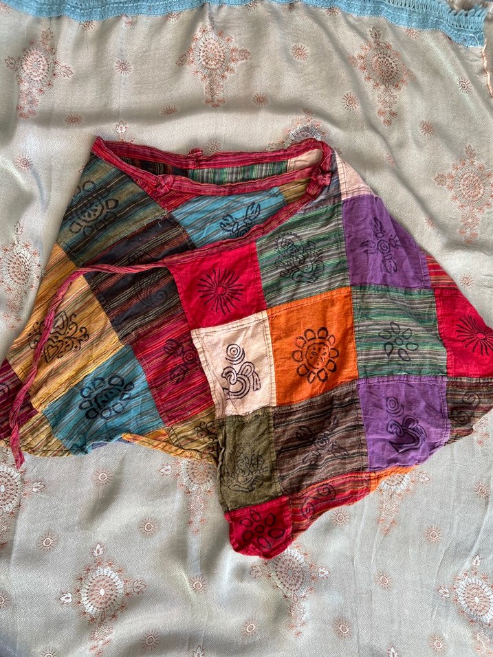 Kadınlar için çok renkli, koyu tonlarda patchwork desenli, bohem tarzda bağlamalı etek her beden için uygundur