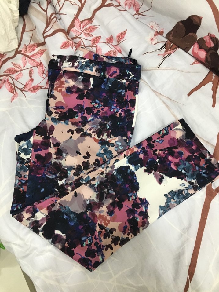 Kadınlar için, çok renkli tie-dye baskılı, bilek boyda, dar kesim midi pantolon. Dış mekan sokak modası için uygundur. Az kullanılmış yeni durumda eskime söz konusu değildir, biraz dar geldiği için artık kullanamıyorum çok rahat ve güzel duruşu olan marka bir üründür