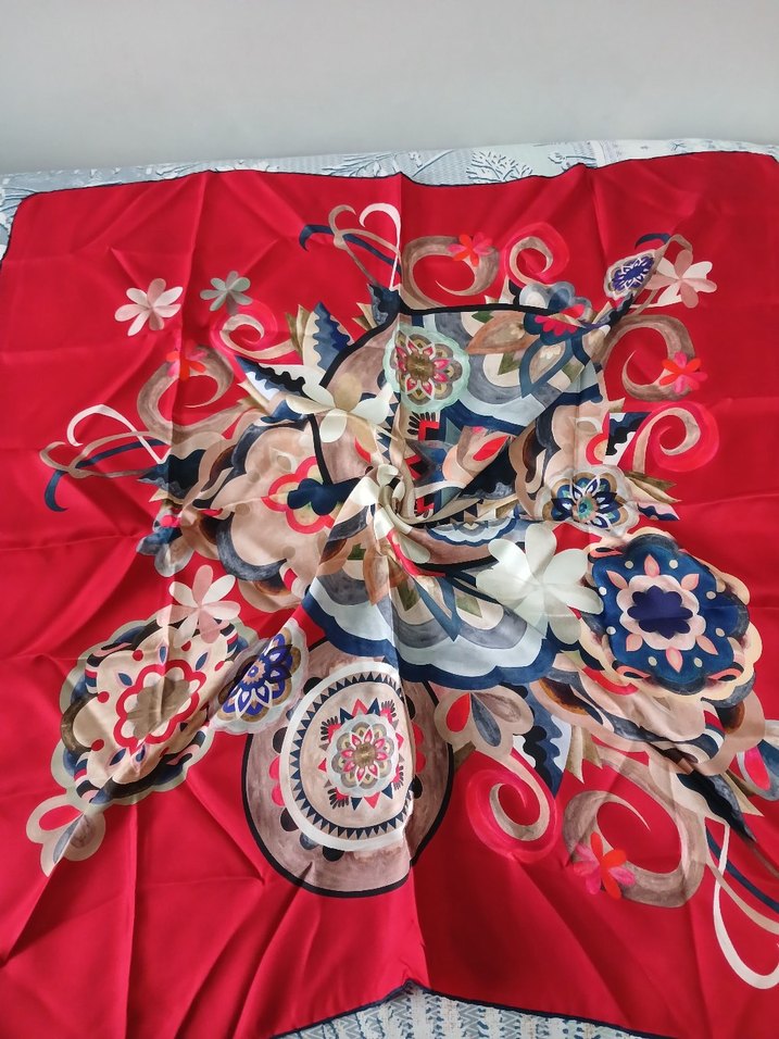 Kadın için çok renkli, koyu tonlarda bohem desenli, drapeli tekstil esarp Bohem ve retro tarzlara uygundur.